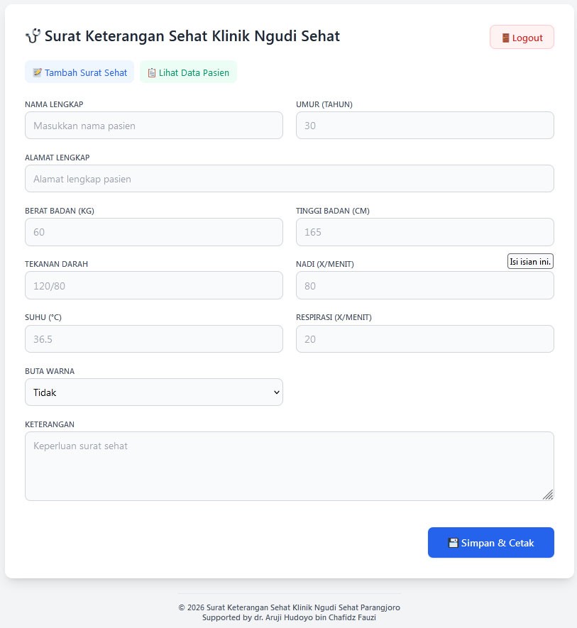 Parangjoro, 1 Januari 2026 — Mengawali tahun 2026, Klinik Ngudi Sehat Parangjoro kembali menunjukkan komitmennya dalam meningkatkan kualitas pelayanan kesehatan dengan meluncurkan Aplikasi Surat Sehat Digital sebagai inovasi pelayanan kesehatan berbasis teknologi. Aplikasi ini dirancang sebagai solusi modern untuk mempercepat dan mempermudah proses penerbitan surat keterangan sehat bagi pasien.